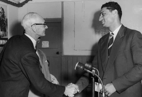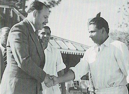 অমরনাথ ও (করমর্দনরত) মানকড়-এর সঙ্গে পাক-রাষ্ট্রনায়ক আইয়ুব খান, শিয়ালকোট, ১৯৫৪-৫৫ সফর