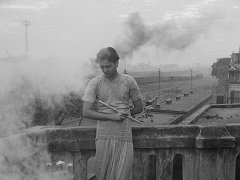 আমি কল্পনা করি বিশ্বকর্মা পুজোর দিন এই ছেলেটার হাতে লাটাই। ঘুড়ির সুতো উড়ছে আকাশে। ওই দিকের ছাতে মেয়েটা একা। ছাত থেকে চোখ মেলে তাকিয়ে আছে লাল ঘুড়ির দিকে। ‘ছেলেটা যেন জেতে।’ অব্যক্ত প্রার্থনা। মাঝখানের সেতু ছাত, আকাশ আর ঘুড়ি।