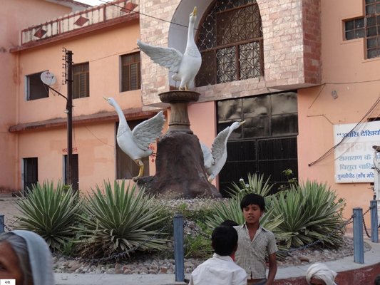 ভাঙ্গা দিয়ে যেমন করা হয়ে থাকে। মন্দিরের সামনে তিনটি রাজহাঁসের