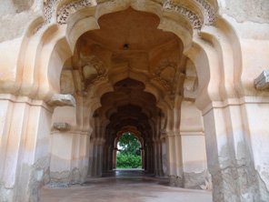 প্রায় সওয়া এগারোটার সময়, অর্থাৎ প্রসন্ন বিরূপাক্ষ মন্দির থেকে মিনিট পনেরো দূরত্বে গঙ্গাধর আমাদের উঁচু পাঁচিল ঘেরা দুর্গের আকারের এক জায়গায় নিয়ে এলো। সামনে এক বোর্ডে তিনটি স্থানের দিক্ নির্দেশ লেখা-লোটাস মহল, হাথিশালা আর রঙ্গ মহল। টিকিট কেটে ঢুকতে হল এই ঘেরা জায়গার মধ্যে যার নাম “জেনানা মহল”। আমার ধারনা হল যে এই নাম নিশ্চয় প্রাচীন নয়, কিছু বছরের মধ্যে দেওয়া হয়েছে। ভারতীয়দের জন্যে জন প্রতি ১০টাকা টিকিটের মূল্য।